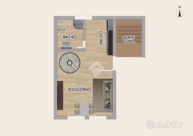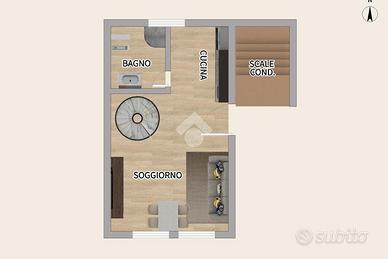 In posizione centrale e comoda per tutti i servizi, proponiamo in vendita grazioso bilocale in duplex situato al primo piano di una piccola palazzina senza spese condominiali.