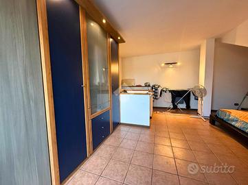 L'ingresso conduce a un'ampia zona living, funzionalmente suddivisa in area soggiorno e cucina a vista, entrambe con accesso ai due balconi. Completa il piano un bagno dotato di vasca e doccia.