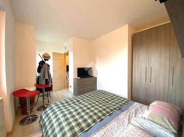 La zona giorno è composta da un luminoso soggiorno con accesso diretto al balcone. La cucina è integrata nel soggiorno, ottimizzando gli spazi e garantendo praticità. Il bagno, rinnovato con cura, è dotato di tutti i comfort necessari.