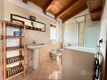 Al piano superiore si trovano una camera matrimoniale con balcone affiancata da un bagno finestrato con doccia, luminoso e funzionale.