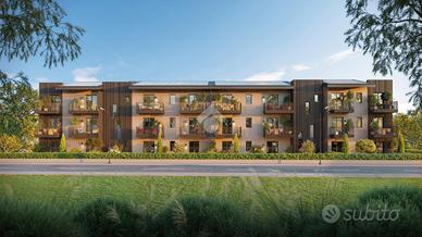 In una zona tranquilla e immersa nel verde, proponiamo bilocali di nuova costruzione in classe energetica A4, progettati all'insegna della sostenibilità ambientale. Situati in posizione strategica, comoda a tutti i servizi ma lontana dal traffico. Le unità abitative sono progettate per offrire spazi generosi e facilmente personalizzabili. La zona giorno è ampia e luminosa, mentre la zona notte è costituita da una camera da letto matrimoniale e un servizio. Più soluzioni disponibili. Il contesto residenziale è valorizzato da una piscina comune, perfetta per momenti di relax. Inoltre, ogni appartamento include un garage. Gli appartamenti verranno eseguiti nel rispetto dei più avanzati criteri di efficienza energetica, per offrire un'elevata riduzione dei consumi e un'impronta ecologica contenuta.