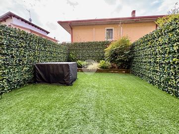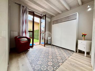 AFFITTO TRANSITORIO 12 MESI In contesto residenziale dotato di piscina, proponiamo con CONTRATTO TRANSITORIO 12 MESI appartamento bilocale al piano terra con doppia porzione di giardino. Si compone da; giardino con serra bioclimatica, soggiorno con cucina a vista, disimpegno, bagno con doccia, camera da letto con accesso al secondo giardino. L'immobile è completamente arredato e dotato di impianto di climatizzazione. Possibilità di parcheggio di fronte al contesto. Le spese condominiali sono INCLUSE nel prezzo mentre le utenze (luce, acqua, gas e tari) sono ESCLUSE. Possibilità di parcheggio nelle immediate vicinanze.