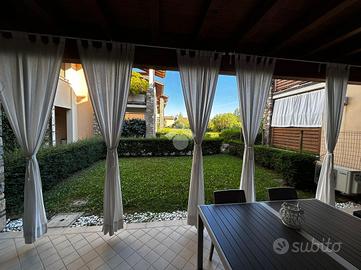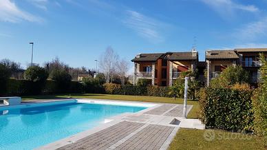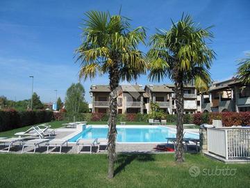 PER INFORMAZIONI BARBARA LOCAZIONE PERIODO ESTIVO DAL 01/06/2026 AL 31/08/2026 RIVOLTELLA - In signorile residence con piscina appartamento posto al piano terra composto da soggiorno, angolo cottura, camera da letto e servizio. Portico con giardino ad uso esclusivo. Box auto. Servito da ascensore. Completamente arredato e climatizzato. Animali non ammessi. € 6.500 per intero periodo dal 01/06/2026 al 31/08/2026 + spesa wifi € 35 mensili + utenza luce