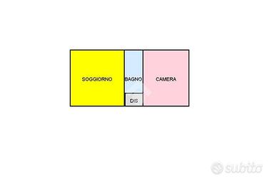 La soluzione è composta da un ingresso diretto nell'ampio e luminoso soggiorno con angolo cottura.