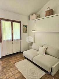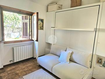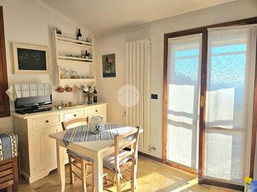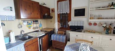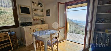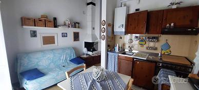 Diano Arentino: Frazione Evigno in complesso con piscina bilocale con balcone, giardino e vista aperta verso il mare. Internamente l'alloggio è curato , si entra in un disimpegno dove difronte troviamo il bagno finestrato, a sinistra la camera da letto con la vista sul giardino ed a destra troviamo il soggiorno con angolo cottura dotato di porta finestre che ci permette di accedere al terrazzo. Dal terrazzo vi ha una vista aperta verso il mare. Il giardino di prorpietà dona momenti di relax e cene o pranzi tra amici. Posto auto condominiale e cantina di proprietà.