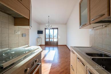 Druento Centro Storico - Box auto e cantina - Terrazino con vista panoramica. A pochi passi dal cuore del Centro Storico di Druento proponiamo in vendita un appartamento completamente ristrutturato tra il 2015 e il 2016. Il condominio, edificato nella seconda metà degli anni '70 è stato oggetto di lavori di mantenimento nel corso degli anni e presenta in buono stato. La posizione strategica promette un contesto tranquillo ma allo stesso tempo centrale grazie alla vicinanza ai servizi che il paese offre. L'appartamento, sito al secondo piano senza ascensore si distingue per la sua luminosità grazie alla sua doppia esposizione. Dalla porta d'ingresso un disimpegno ci accoglie agli ambienti della casa; La zona giorno, di generosa metratura e ben luminosa è caratterizzata dalla presenza di un terrazzino dotato di tenda estiva esposto a Sud con vista sulle valli Piemontesi. La zona notte comprende una camera da letto dotata di ripostiglio e di un balconcino verandato con affaccio sull'interno cortile dello stabile. Un bagno totalmente ristrutturato rifinisce la zona notte. Completano l'immobile la presenza di un box auto privato nell'interno cortile ed un locale ad uso cantina posto al piano seminterrato. Il riscaldamento è centralizzato con termovalvole.