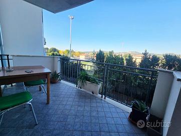 L'immobile presenta una funzionale zona living con cucina a vista e accesso ad un primo terrazzo vivibile, ideale per trascorrere momenti di relax o condivisione.