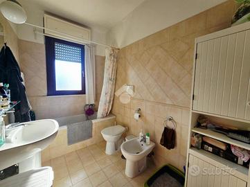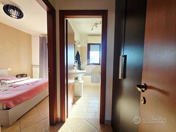 Un disimpegno conduce sia ad un bagno dotato di vasca e finestra, sia ad una spaziosa camera matrimoniale con un ulteriore terrazzo abitabile.