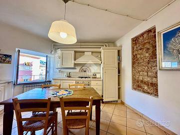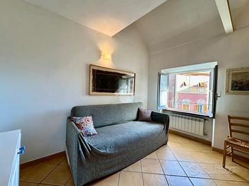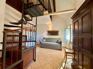Nel cuore di Finalborgo, uno dei borghi più belli d'Italia e meta rinomata per gli amanti della storia e delle attività outdoor, proponiamo un suggestivo appartamento completamente ristrutturato e pronto all'uso, situato al terzo e ultimo piano di un palazzo storico, a due passi dall'ingresso di Porta Reale e affacciato direttamente sulla piazza della Basilica di San Biagio. L'ingresso si apre su un luminoso soggiorno con cucina a vista completamente attrezzata. L'immobile viene venduto parzialmente arredato, incluso un divano letto a castello, perfetto per ospitare più persone in maniera pratica e discreta. Una comoda scala conduce alla zona notte soppalcata, un ambiente accogliente valorizzato da travi in legno a vista. Il bagno è dotato di doccia, velux e una pratica zona lavanderia con lavatrice e asciugatrice. A completare la proprietà, nel sottotetto, si trova un ampio ripostiglio mentre nell'atrio condominale vi è uno spazio dedicato al posteggio bicilette. Soluzione ideale sia come prima casa che come casa vacanze o investimento, grazie alla posizione strategica nel pieno centro storico e alla vicinanza a tutti i servizi.