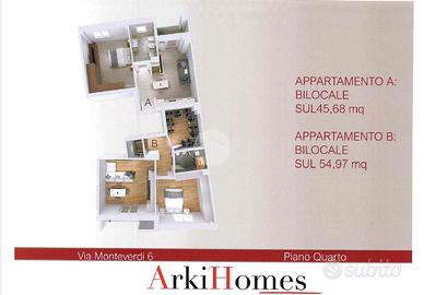 Via Monteverdi, proponiamo in vendita moderno bilocale di 46 mq, nuova realizzazione situato al quarto piano. Composto da ingresso su disimpegno che conduce ad un ampio soggiorno con angolo cottura con accesso sulla terrazza interna, camera matrimoniale, ampio bagno finestrato con box doccia, cantina. Zona ben servita grazie alla vicinanza della tramvia T2. L'immobile verrà dotato di pavimenti in parquet, porta blindata, infissi nuovi in PVC con doppi vetri, riscaldamento centralizzato a pavimento e predisposizione impianto di aria condizionata!