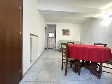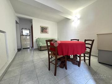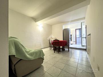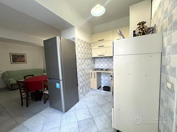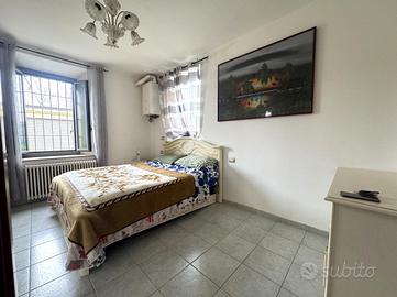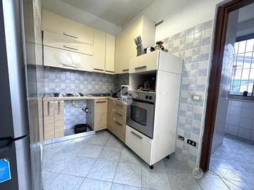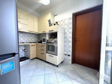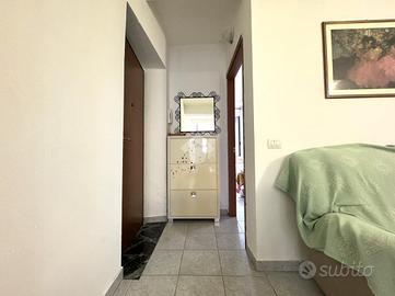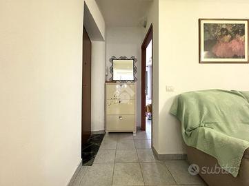 L'appartamento si apre sulla zona giorno composta da un comodo soggiorno e una cucina semi abitabile da cui si accede al giardino privato di 57mq.