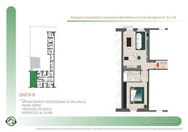FORO BOARIO: Il progetto prevede la realizzazione di 12 unità abitative, adeguabili alle esigenze della clientela, sia in termini di layout che di finiture. Tutte le unità sono infatti personalizzabili grazie ad un capitolato con un'ampia scelta di materiali e alla possibilità di gestire e controllare la propria casa grazie all'utilizzo di sistemi di domotica. L'appartamento (8) si trova al primo piano ed è composto da ingresso, soggiorno con angolo cottura, camera da letto e bagno. Compreso nel prezzo è presente una comoda cantina di 6,50 mq al piano interrato e posto auto. Il complesso è dotato di ascensore. L'impianto di riscaldamento sarà del tipo radiante a pavimento con conduzione a pompa di calore completo di cronotermostato ambiente, inoltre verrà eseguita la predisposizione per l'istallazione di cronotermostati separati per ogni ambiente. Durante il periodo invernale il riscaldamento e la produzione di acqua calda sanitaria saranno garantiti mediante l'utilizzo di una pompa di calore elettrica aria-acqua ad elevato rendimento, integrata per i periodi invernali più rigidi da una caldaia a condensazione. Verrà eseguita la predisposizione impianto di raffrescamento a split con presenza di n. 2 attacchi. Verrà eseguito un cappotto termico interno ed esterno. L'opera verrà realizzata secondo la migliore regola dell'arte, completa e funzionante in ogni sua parte. L'edificio, a destinazione residenziale, sarà realizzato con criteri costruttivi, tecnici e normativi tali da rientrare nella categoria di classificazione energetica "A" con notevoli benefici sia per quanto riguarda il risparmio in bolletta sia per il comfort interno. A carico e di competenza del Costruttore sarà il rilascio di polizza assicurativa postuma decennale. Contattaci per fissare il tuo appuntamento, Invia un messaggio al numero WhatsAPP oppure chiama allo in alternativa scrivici una mail su foca4@tecnocasa.it e sarai prontamente ricontattato. DEVI ANCHE VEN