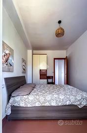 Un corridoio conduce alla zona notte, composta da una camera matrimoniale con accesso al balcone, e al bagno dotato di doccia.