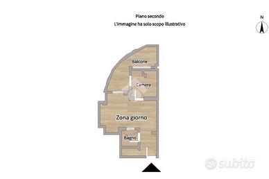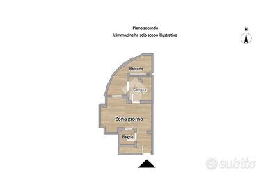 La zona notte comprende una camera da letto matrimoniale e un bagno con box doccia.