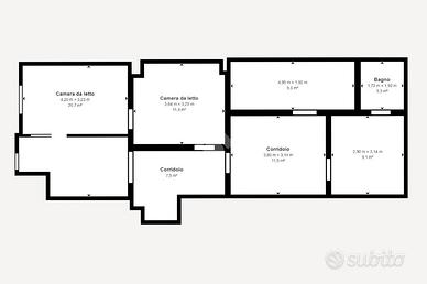 L'abitazione si compone da una spaziosa camera da letto a prospetto e di una seconda ampia camera, entrambe con le caratteristiche e architettoniche volte a stella.