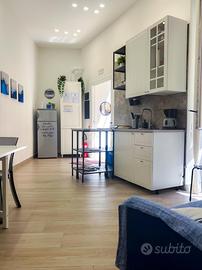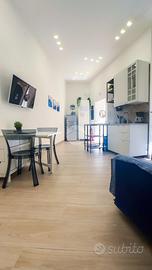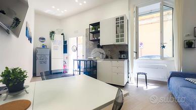 L'immobile è composto da un ampio salone con cucina a vista, una camera matrimoniale e un bagno completo di box doccia. Gli ambienti sono ben distribuiti, funzionali e accoglienti. L'appartamento è stato ristrutturato completamente con materiali di alta qualità e viene venduto completamente arredato, pronto per essere vissuto o gestito come struttura ricettiva.