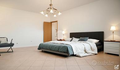 La camera matrimoniale, ampia e rilassante, gode di un piacevole affaccio sul balcone esposto a est, dove la luce del mattino filtra delicatamente, creando un'atmosfera serena e rigenerante.