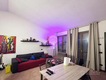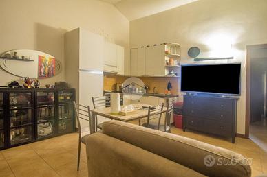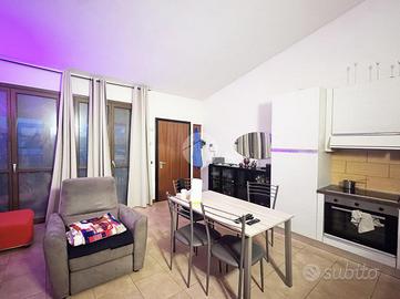 L'ingresso si apre su una spaziosa zona giorno in open space con soggiorno e angolo cottura di generose dimensioni, un ambiente accogliente e funzionale impreziosito da una grande finestra che accompagna lo sguardo verso il terrazzino, perfetto per un momento di relax all'aperto.