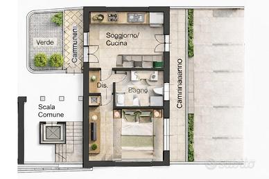 Nel centro storico di Gassino Torinese, bilocale al piano terra privo di barriere architettoniche e dotato di cortile privato. L'immobile è inserito in un edificio di recente costruzione, e si presenta in ottimo stato di manutenzione. L'ingresso è living su soggiorno con cucina a vista. Un disimpegno conduce al bagno finestrato, completo di box doccia, e alla camera da letto matrimoniale di forma regolare. Dal soggiorno e dalla camera da letto si accede, tramite porte finestre, al cortile privato, ideale come spazio esterno ad uso esclusivo. Il riscaldamento è semi-autonomo, con caldaia centralizzata e contabilizzatori individuali per una gestione efficiente dei consumi. È possibile acquistare separatamente un comodo box auto situato all'interno del cortile condominiale al prezzo di € 20.000 a parte. La zona è tranquilla e ben servita, comoda a tutti i principali servizi.