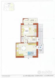 L'appartamento si compone di due locali ben distribuiti, ovvero, soggiorno angolo cottura, bagno e camera da letto con comodo balcone. La classe energetica A++ assicura un'elevata efficienza energetica, riducendo i costi di gestione. I pannelli solari installati contribuiscono ulteriormente al risparmio energetico e al rispetto dell'ambiente.