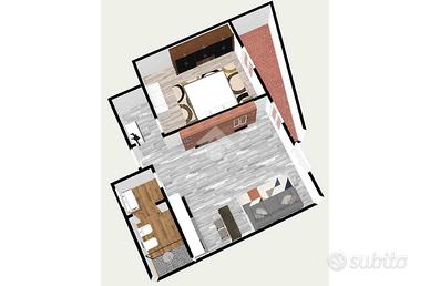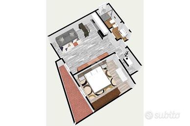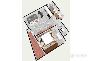 La zona notte comprende una spaziosa camera da letto, mentre il bagno, anch'esso ristrutturato, completa la disposizione interna.