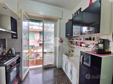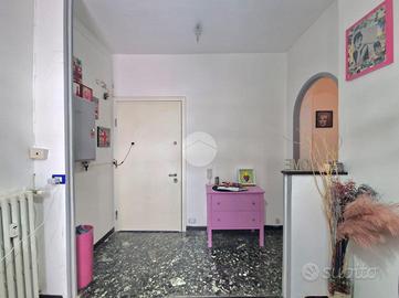 Nel cuore di Palmaro, a Genova, è disponibile un appartamento di 60 mq situato al sesto ed ultimo piano di un edificio dotato di ascensore. L'immobile, costruito nel 1960, offre una disposizione funzionale degli spazi. L'ingresso si apre su un accogliente angolo cottura con tinello, ideale per momenti di convivialità. La zona notte comprende una spaziosa camera matrimoniale, mentre il bagno, dotato di finestra, garantisce luminosità e ventilazione naturale. Una pratica dispensa offre ulteriore spazio per lo stoccaggio. Uno dei punti di forza dell'appartamento è la lunga balconata che collega tutti i vani, permettendo di godere di una vista aperta con scorcio mare e di un'ottima esposizione. Completa la proprietà il parcheggio condominiale libero con accesso tramite sbarra automatizzata. Questa soluzione abitativa rappresenta un'opportunità interessante per chi cerca un'abitazione funzionale e ben collegata.