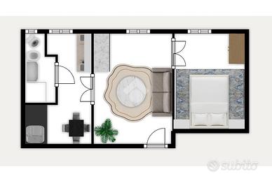 Adiacente alla sala, si trova un pratico cucinotto, progettato per ottimizzare gli spazi e facilitare le attività quotidiane. La zona notte comprende una camera da letto, mentre un bagnetto completa la disposizione interna.
