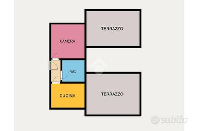 L'appartameno dispone di ingresso con corridoio, camera da letto con uscita sul terrazzo, bagno e cucina con uscita sul secondo terrazzato.