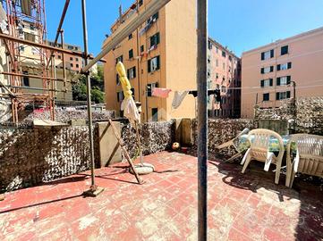 Nel cuore del quartiere Lagaccio a Genova, proponiamo un accogliente appartamento di 33 mq interni più due spaziose aree esterne terazzate.