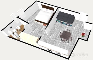 La zona notte comprende una camera da letto e un bagno, garantendo comfort e praticità.