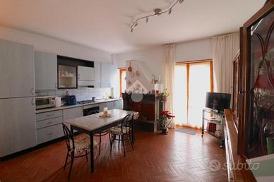 L'appartamento è composto da zona giorno con angolo cottura, balcone e camino; piccolo disimpegno, camera da letto matrimoniale e bagno finestrato con doccia.