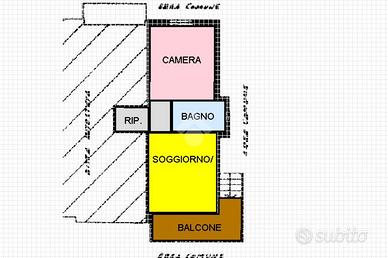 La soluzione è composta da un luminoso soggiorno con cucina a vista, da cui si può accedere all' ampio balcone , ampio disimpegno che conduce al bagno finestrato dotato di box doccia, al ripostiglio e alla spaziosa camera matrimoniale.