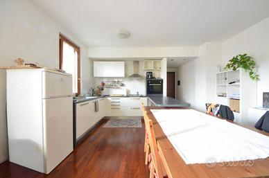 L'ingresso si apre sulla zona giorno composta dall' ampio soggiorno con cucina a vista, grazie ad una porta finestra, è possibile accedere al primo balcone privato, spazio ideale per momenti di relax all'aperto.