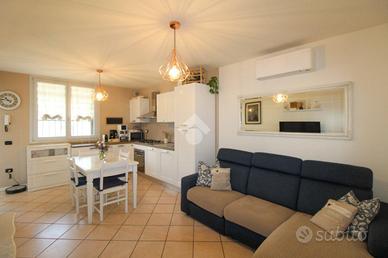 COSA SAPERE SULLA CASA: PIANO TERRA - SOGGIORNO - ANGOLO CTTURA - CAMERA - BAGNO - GIARDINO. PARTICOLARITA' E DESCRIZIONE: In zona tranquilla disponiamo di ampio apartamente bilocale al piano terra con ingresso indipendente recentemente ristrutturato. L'appartamento è composto da soggiorno con parte cottura in un unico ambiente, disimpegno, camera matrimoniale ampia e bagno con doccia ed angolo lavanderia. Dal disimpegno si accede al giardino privato sul retro rifinito con erba sintetica con piccolo portichetto. L'immobile viene venduto completo di parte dell'arredo. DISPONIBILE DA GIUGNO 2027. Dettagli: - impianto elettrico rifatto nel 2018 - infissi in legno doppio vetro anno 2000 - caldaia a condensazione anno 2018 - portoncino blindato - climatizzatore/pompa di calore anno 2021 - Giardino sintetico anno 2025 - inferiate su tutte le finestre e portefinestre anno 2018