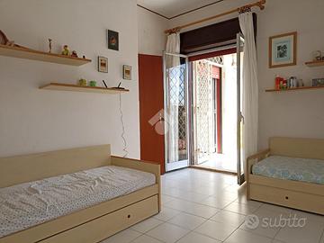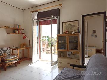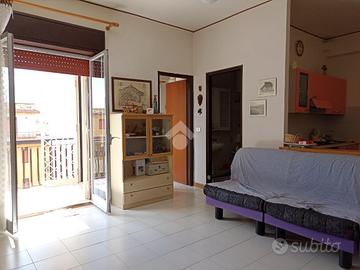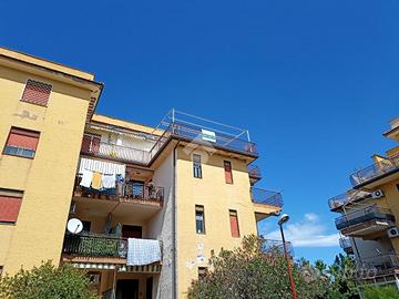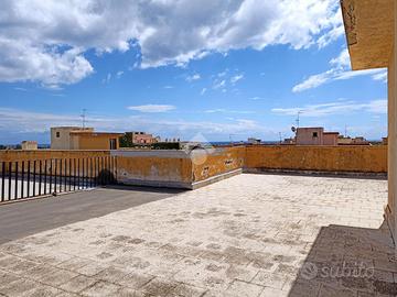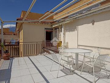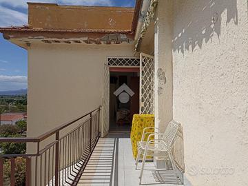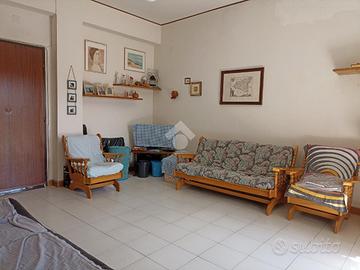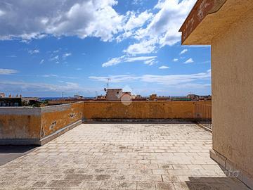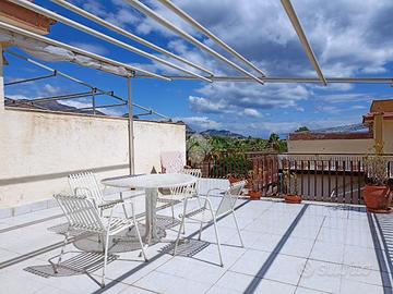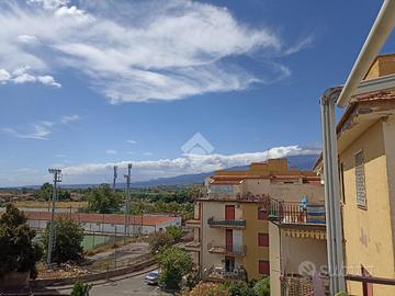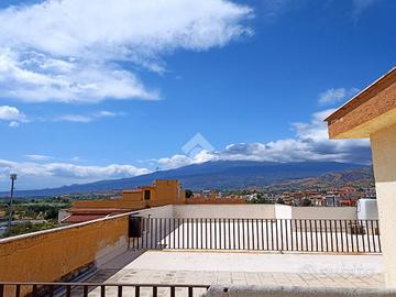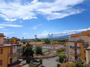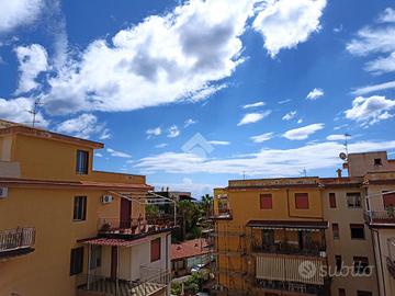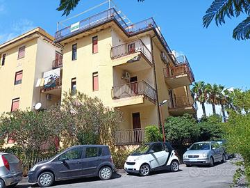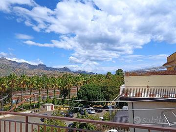 L'appartamento si trova all'interno di complesso residenziale composto da più palazzine,le spese condominiali consistono in 600 annui, che comprendono il servizio portineria per l'intero anno e il servizio navetta per il periodo estivo, il prospetto esterno è in fase di ristrutturazione. L'appartamento si trova al quarto piano con ascensore, si tratta di un comodo bilocale con servizi e terrazzo a livello e sovrastante; internamente misura 62 mq calpestabili, l'ingresso è su ampio soggiorno con a destra la zona cucina, a seguire il servizio con doccia non finestrato e la camera da letto matrimoniale con porta e finestra, sia la zona notte che la zona giorno hanno uscita sul terrazzo a livello di 44 mq panoramico con vista mare, Etna e Taormina attrezzato da comoda tenda da sole. Le condizioni interne si presentano allo stato originario, gli infissi in alluminio monovetro con avvolgibili e tutte le aperture dotate di inferriate, i pavimenti in ceramica, gli impianti idrico ed elettrico funzionanti. Nella vendita è compreso il terrazzo sovrastante di proprietà esclusiva di 65 mq, un comodo garage di 17 mq e l'arredamento.