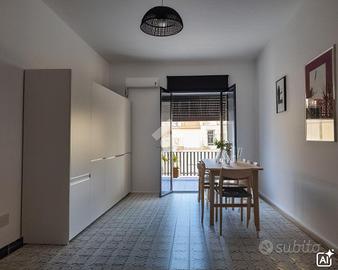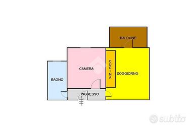 L'appartamento si trova al secondo piano con ascensore, si tratta di un bilocale spazioso, internamente misura 52 mq; l'ingresso è su disimpegno, a destra la zona giorno di 24 mq con angolo cottura e uscita su balcone terrazzato di 8 mq, a sinistra dal disimpegno troviamo la camera da letto matrimoniale finestrata e infine un servizio con doccia, anch'esso finestrato.