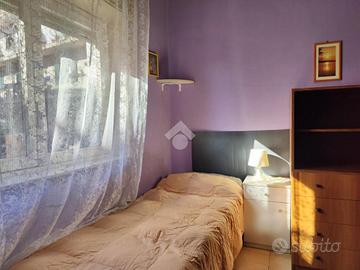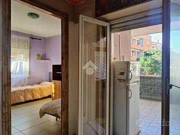 L'immobile proposto in locazione si trova all'interno di un condominio di 16 unità abitative, la palazzina si sviluppa su quattro elevazioni fuori terra, con un prospetto esterno in buono stato. L'appartamento è un bilocale, posto al piano rialzato senza ascensore. Internamente misura 40 mq netti calpestabili, con ingresso su zona giorno con angolo cottura a gas con bombola e uscita su un terrazzo angolare esposto a sud-ovest che si affaccia sull'androne d'ingresso condominiale; a seguire un disimpegno/antibagno da cui si accede ad un servizio con doccia finestrato e infine una camera da letto matrimoniale finestrata esposta a sud. L'appartamento è in discrete condizioni interne, necessita di alcuni interventi di ripristino da fare prima di abitarlo; l'impianto elettrico è allo stato orignario ma funzionante, l'impianto idrico in bagno è stato invece rifatto da qualche anno, la pavimentazione è in ceramica, gli infissi sono in alluminio monovetro e avvolgibili. Non sono presenti climatizzatori o riscaldamenti. L'appartamento viene locato parzialmente arredato. Sono escluse dal canone mensile di locazione, le spese di condominio, utenze, con volture a carico del futuro inquilino.
