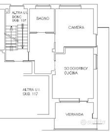 L'alloggio, sito al primo piano di un piccolo condominio, si compone di ingresso, soggiorno con angolo cottura e camera matrimoniale; completa la proprietà il posto auto.