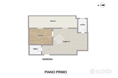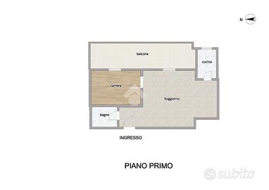 Entrando, si viene accolti da un soggiorno luminoso con retrocucina, la camera matrimoniale offre un accesso diretto al balcone, che si estende lungo il soggiorno, creando uno spazio ideale per godersi un caffè mattutino o una lettura serale all'aperto. Il bagno completa la disposizione degli ambienti.