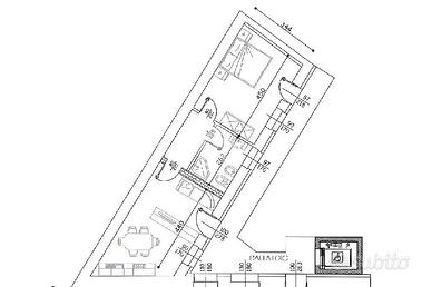 L'alloggio è un tranquillo bilocale, proposto come primo ingresso, si compone di un comodo soggiorno con cucina a vista, un bagno completo con finestra e una spaziosa camera matrimoniale.