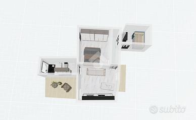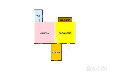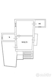 Le sue condizioni riversano in uno stato manutentivo scarso ed è composta da ingresso direttamente nella zona soggiorno, cucina non abitabile con finestra e una spaziosa camera da letto con bagno.