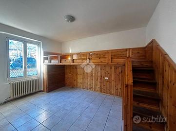 Vendesi bilocale con ripostiglio, cantina privata e giardino con tettoia, dove è possibile ricavare un box auto.