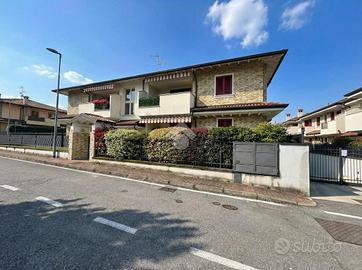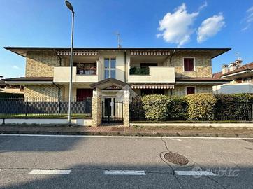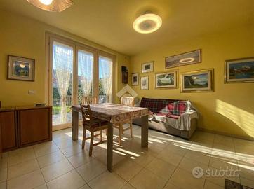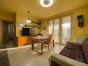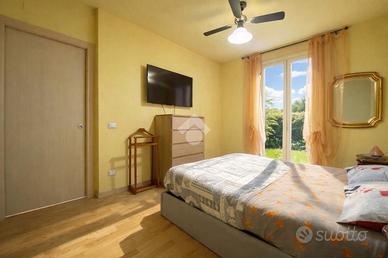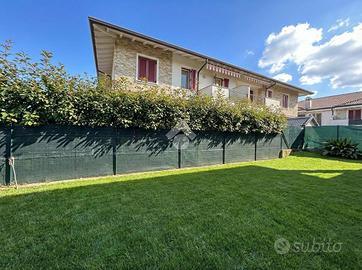 --- LIBERO A PARTIRE DA GIUGNO --- GREZZAGO zona residenziale - In area riservata e tranquilla, nel complesso de "I Giardini di Grezzago" costruito nel 2019 e rifinito e decorato esternamente con travi bianche e pietre. Ben collegato a Milano grazie all'ingresso in Autostrada A4 di Trezzo sull'Adda e alla Metropolitana MM2 di Gessate. L'Agenzia Immobiliare Tecnocasa propone bilocale posto al piano terra con ampio giardino angolare di oltre 100 mq. In classe energetica A2, dotato di riscaldamento a pavimento, pannelli solari-termici e cappotto esterno. L'appartamento si compone di soggiorno con cucina a vista e tripla vetrata che affaccia sul portico coperto, e disimpegno, attrezzato con vano lavanderia. La zona notte si suddivide in camera matrimoniale, con porta finestra e sfogo esterno, e bagno finestrato con box doccia e sanitari sospesi. L'immobile dispone di ventilazione meccanica controllata (VMC), predisposizione per il condizionatore, videocitofono, porta blindata e predisposizione per antifurto. Pavimentazione in gres porcellanato, serramenti in pino massello sbiancato con doppi vetri e persiane in legno color tortora. Cantina e box singolo, posti al piano seminterrato, completato la proprietà. --------------------------------------------------------------- La presente descrizione e le immagini riportate hanno valore puramente indicativo e non costituiscono elemento contrattuale, ivi comprese tecnologie ed arredi installati.