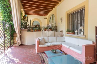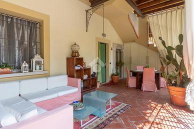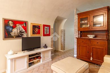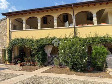 In uno degli angoli più suggestivi di Gussago nella tranquilla località di Piè del Dosso in corte storica completamente ristrutturata nel 2010, proponiamo bilocale al piano terra con portico e posto auto esclusivo. Si accede all'abitazione tramite il portico di c.a. 35 mq e rifinito sui lati corti con armadiature su misura e tendaggi che garantiscono privacy. La zona giorno caratterizzata da un soffitto con volta a botte presenta un angolo cottura con piccola dispensa e una zona living con doppio accesso al porticato. Un disbrigo conduce nella zona notte con una camera matrimoniale con travi a vista, un bagno con doccia ed una stanza jolly sfruttabile come piccola cameretta o studio. Elemento di spicco della zona notte sono le altezze interne che toccano i 3,6 mt e si prestano per strutture a soppalco come già presenti nel bagno. I serramenti che affacciano sul porticato sono dotati di inferriate.