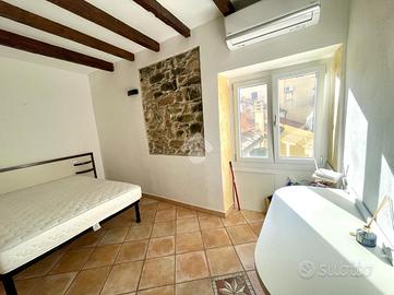 Siamo a 50 metri dal mare, in una piccola palazzina di pochi condomini. Qui un bel bilocale ristrutturato a nuovo è disponibile per una casa vacanze o per investimento. La casa è al secondo piano e ha di pertinenza una bella balconata, difficile da trovare nel centro storico della città. Si sviluppa su due livelli, l'ingresso in un corridoio porta alla zona notte con bagno, tramite qualche gradino si accede alla zona giorno, con due portafinestre che danno sul balcone. Il fascino della pietra fa da podrona e l'eleganza è presente in tutta la casa. Ben arredata e curata questa è una soluzione pronta da abitare!