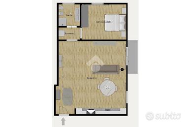 La zona notte è composta da una camera matrimoniale e da un servizio finestrato con box doccia.