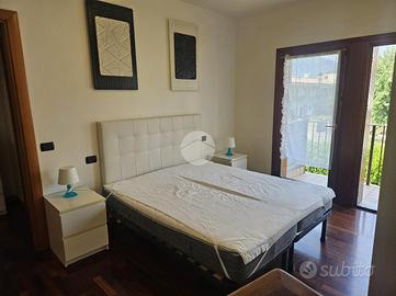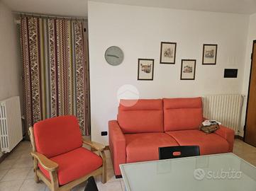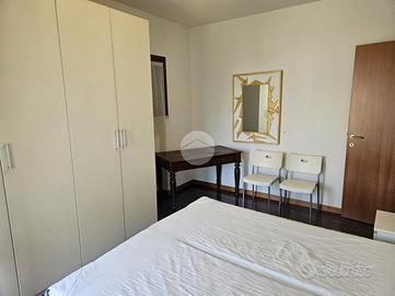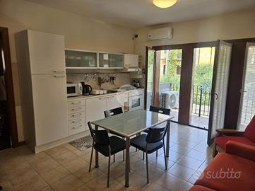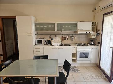 Appartamento bilocale dotato di aria condizionata sito al piano primo con ascensore composto da soggiorno cottura con balcone e divano letto. Bagno con doccia dotato di lavatrice e asciugatrice e camera matrimoniale con balcone. Cantina per biciclette al piano seminterrato.Parcheggi pubblici a pochi metri dalla casa.