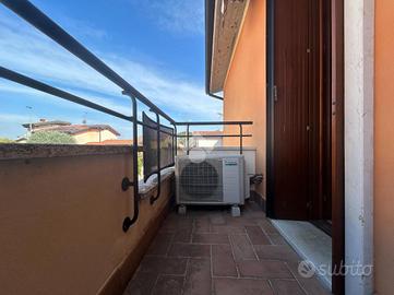 In tranquilla zona residenziale, comoda al centro del paese, appartamento bilocale di mq. 65 circa situato al primo ed ultimo piano di una piccola palazzina del 2007. L'immobile, con ingresso indipendente, è composto da soggiorno con angolo cottura e accesso al balcone, camera matrimoniale con secondo balcone, ripostiglio e bagno finestrato. Completano la proprietà un garage doppio al piano interrato e spese condominiali minime. Disponibile da subito. Ottima soluzione anche come investimento.