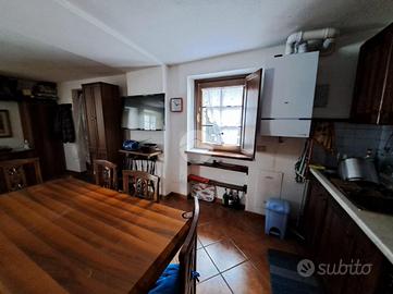 Internamente, l'immobile si sviluppa su due livelli dove al piano terra troviamo la zona giorno con cucina, mentre al piano di sotto, collegato internamente, vi sono due vani adibiti a zona notte, un servizio e un piccolo ripostiglio.