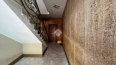 Un viale pedonale ci conduce ad un cortile pavimentanto condominiale, dove troviamo il portone d'entrata.